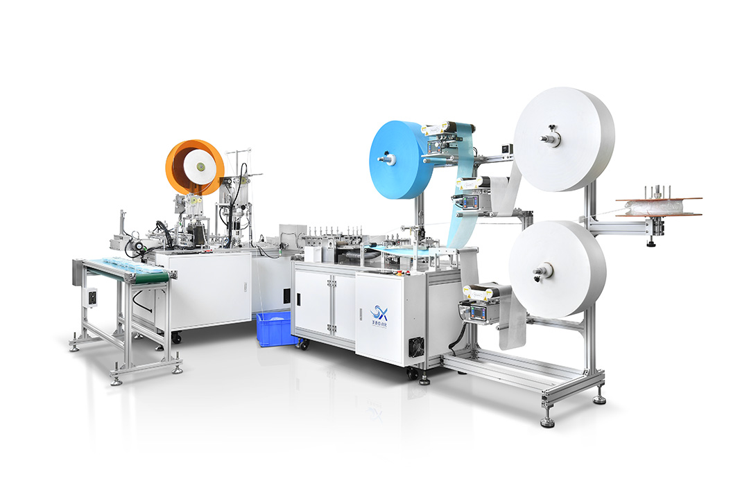 本機(jī)型是最新研發(fā)的全自動平面內(nèi)耳口罩生產(chǎn)線,包括原材料自動輸送/切斷鼻梁條/口罩邊緣焊接/折疊/超聲波熔合/成型切斷/翻片/耳帶焊接/包邊焊接及切斷/自動成品送出等全程自動化,完成從原材料到口罩成品的整個(gè)生產(chǎn)過程。